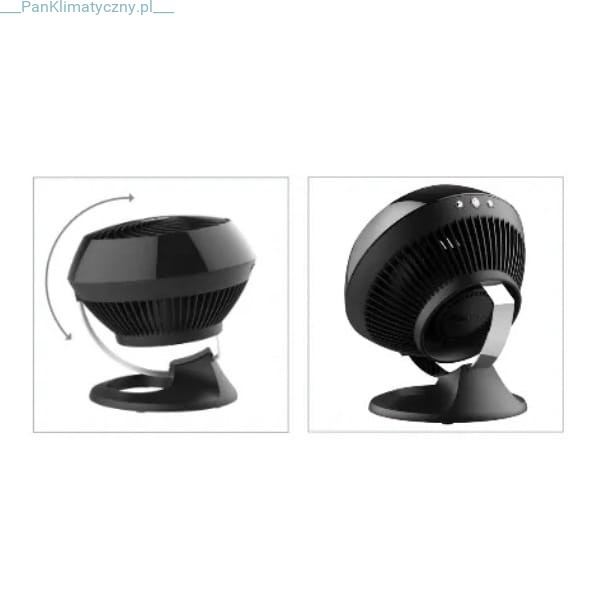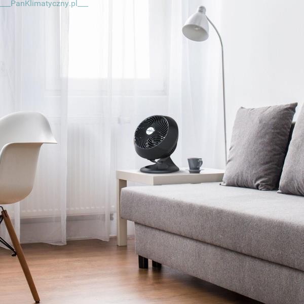 Cyrkulator Vornado 506 do małych i średnich pomieszczeń. Opiera swoje działanie na opatentowanej technologii Vortex Action – silny strumień powietrza o skręconej strukturze dociera na maksymalną odległość 23m. Wentylator będąc w pozycji poziomej wytwarza komfortowy ruch powietrza opływający pomieszczenie, ponadto użytkownik ma możliwość skierowania strumienia powietrza bezpośrednio na siebie. Po skierowaniu głowicy pionowo, uzyskamy w pomieszczeniu efektywne wyrównanie temperatury powietrza, dzięki wymieszaniu chłodniejszego powietrza przy podłodze z cieplejszym pod sufitem.