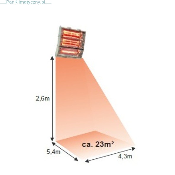 Promiennik ten polecany jest zarówno do zastosowań domowych, jako ogrzewanie zewnętrzne na tarasach, werandach, patio, w ogrodach zimowych, a także do użytku komercyjnego w ogródkach restauracji, kawiarni, w namiotach cateringowych, na scenach plenerowych, czy jako dodatkowe strefowe ogrzewanie w halach wystawowych i produkcyjnych, w warsztatach czy magazynach, kościołach i innych dużych obiektach.
