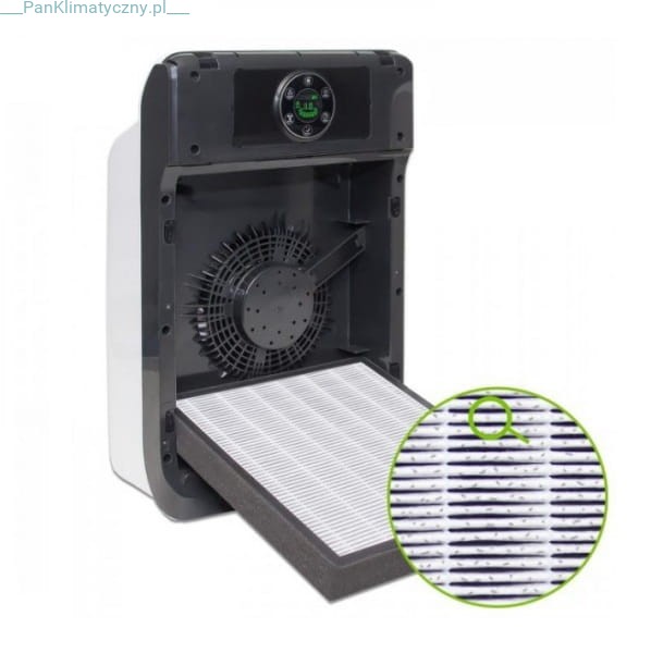filtra HEPA (odpowiada za ograniczanie zanieczyszczeń powietrza takich jak: zawieszone pyły, PM 2,5, PM10, dym, sierść zwierzęcą, zarodniki grzybów, kurz domowy i cząsteczki sadzy ),