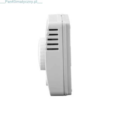 Elektroniczny regulator natynkowy produkcji europejskiej. Urządzenie dokonuje pomiaru temperatury za pomocą wbudowanego czujnika powietrznego. Ustawienia temperatury za pomocą pokrętła do manualnej regulacji temperatury w zakresie 11-29 °C po 0,5 °C. Możliwość uruchomienia automatycznego nocnego obniżania temperatury (o 3 °C przez 8 godzin). Regulator przeznaczony do instalacji naściennej, na puszce podtynkowej.
